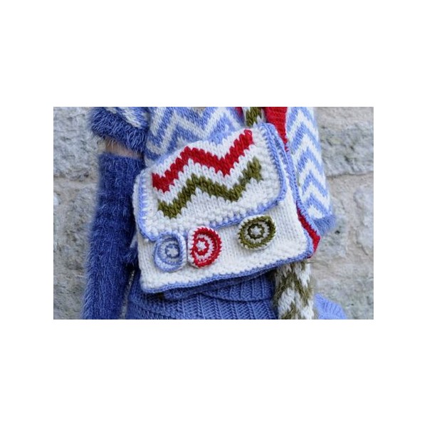 La besace est tricotée en Eskimo de drops fil double aux aiguilles n°10, en jersey avec un jacquard chevrons.