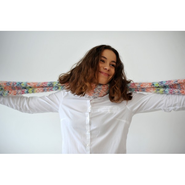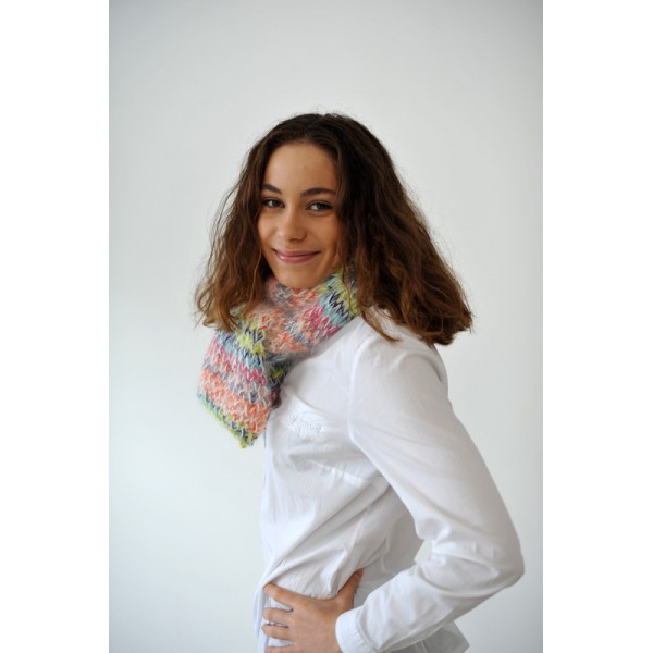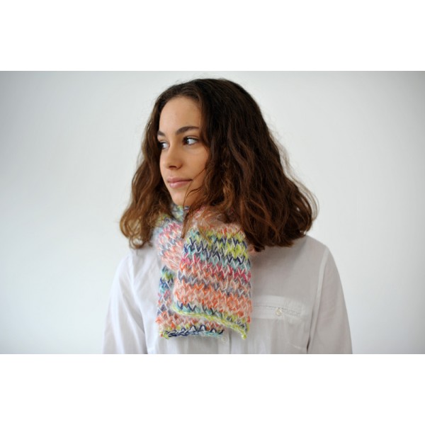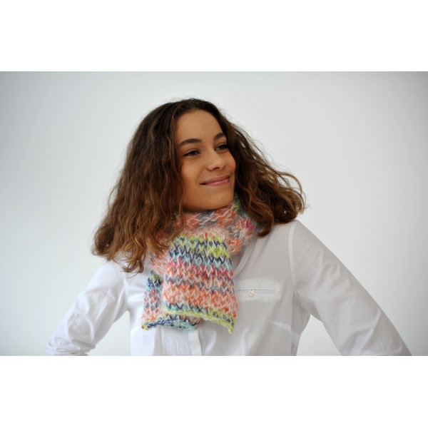Le Kit Echarpe Arc en Ciel est réalisé en KnitCol d'Adriafil et Angora di Luce.