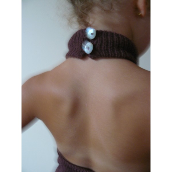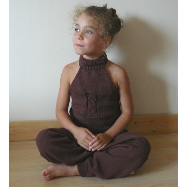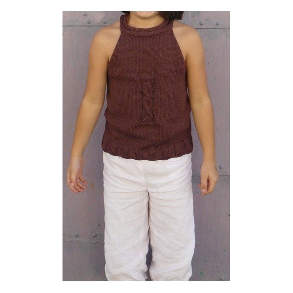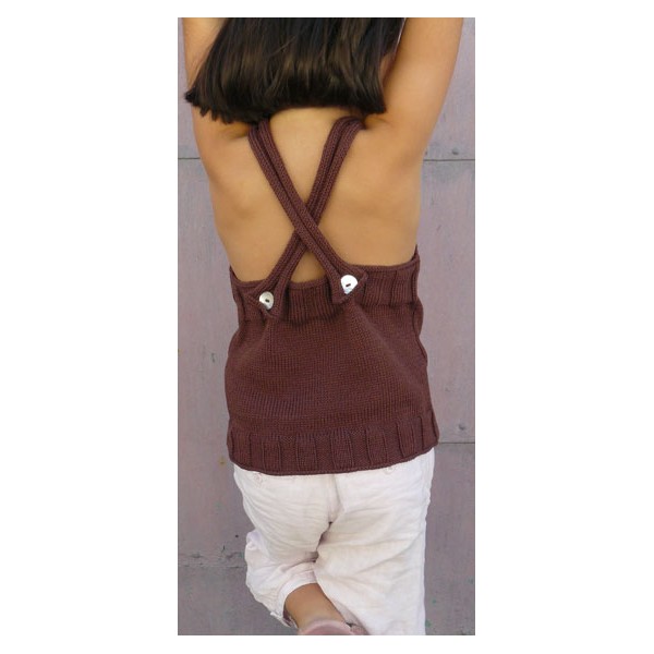 Débardeur en Coton Biologique di Luce coloris "écrin" ou "sous un pétale" tricoté aux aiguilles n°3,5 en jersey endroit, jersey envers, côtes 5/5, rangs raccourcis, chaînette (crochet).Niveau facile.Création lulu la guitare pour LUCE
