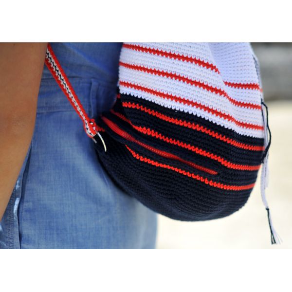 Le KIT SAC A DOS MARIN est réalisé en Rico Creative Coton Aran il comprend la laine, les anneaux, la fermeture éclair et les explications sont envoyées par email.