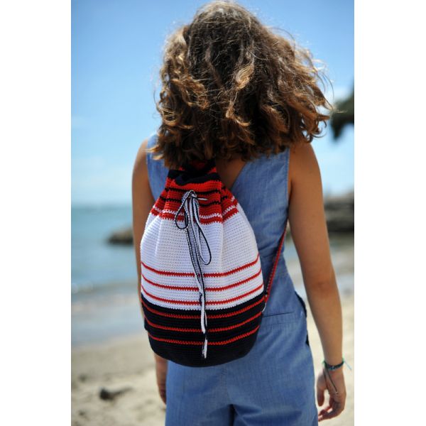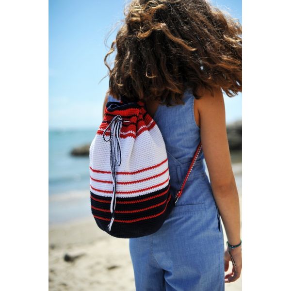 Le KIT SAC A DOS MARIN est réalisé en Rico Creative Coton Aran il comprend la laine, les anneaux, la fermeture éclair et les explications sont envoyées par email.