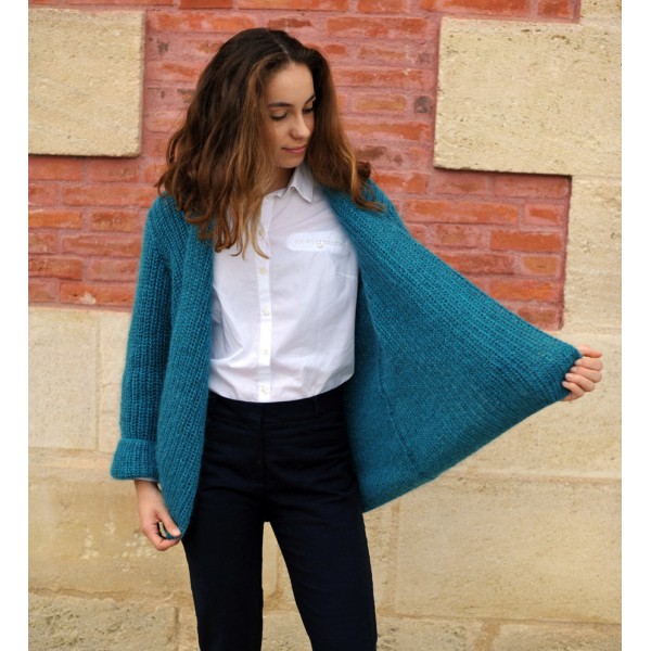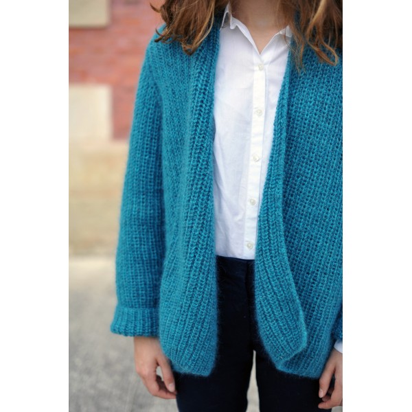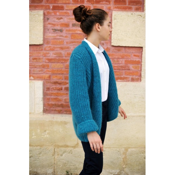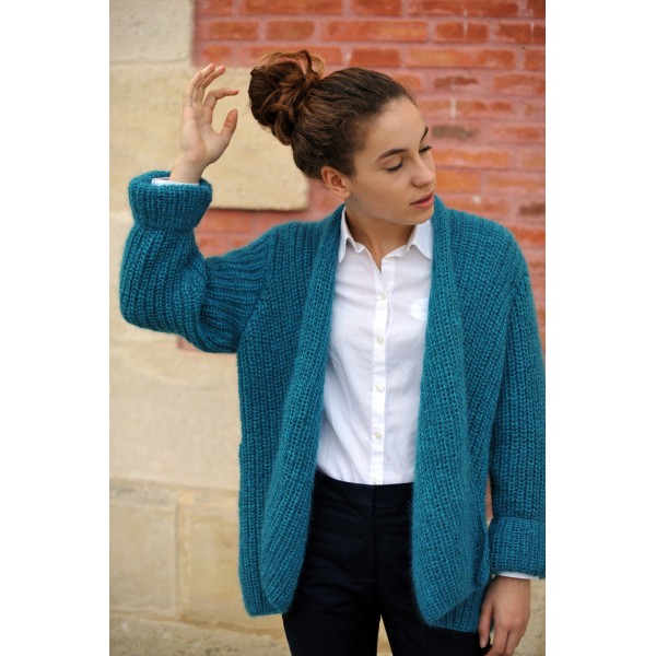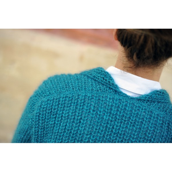 Le KIT VESTE ECLAIRCIE REVERSIBLE est réalisé en Dolce di Luce coloris éclaircie et Rico Super Kid Mohair Soie.