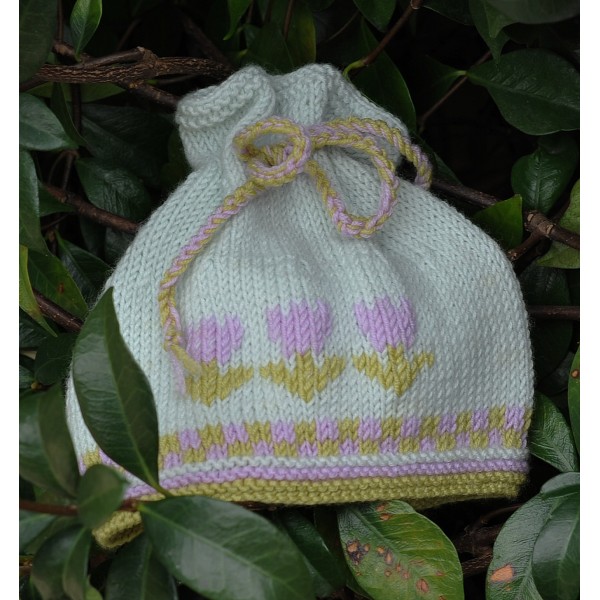 - 1 pelote de la couleur désirée pour réaliser les tulipes, le damier et les rayures.