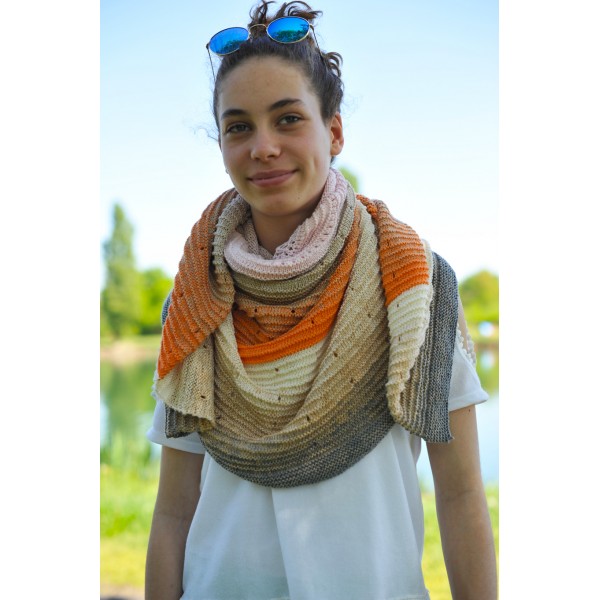 Le Kit Châle NUIT D'ETE est réalisé en SPRING RAINBOW de Katia
