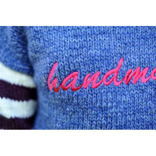 Il est réalisé en Merino Wool di Luce 8mm pour les manches (écru, fuchsia, prune) et