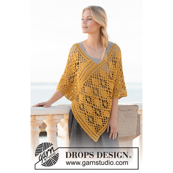 Poncho crocheté en DROPS Cotton Light, en point ajouré. Du S au XXXL.