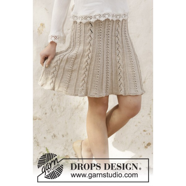 Jupe tricotée de haut en bas, avec torsades et point ajouré, en DROPS Cotton Light Du S au XXXL.