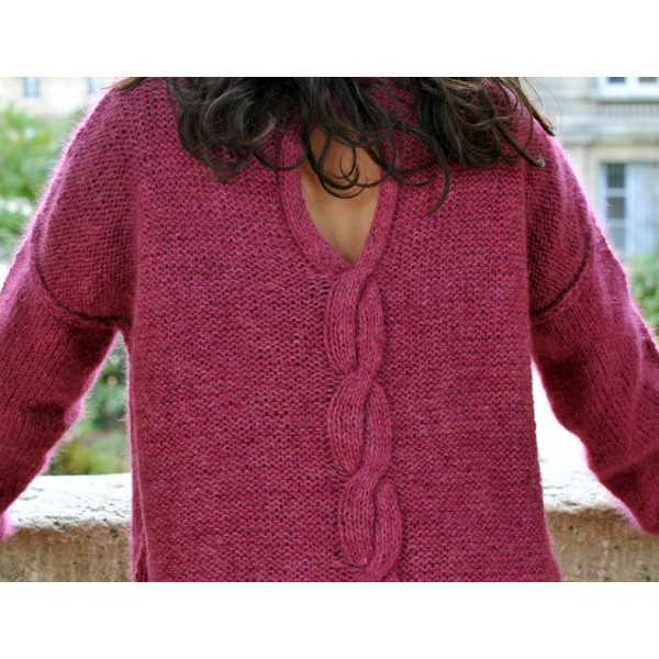 Le modèle de présentation est réalisé en DDL 2 fils coloris coulis d'été + kid silk 17 coloris rose foncé taille 38/44