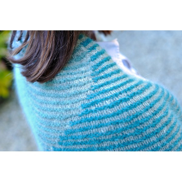 Le modèle de présentation est tricoté en DDL 2 fils coloris pépite, amandier et source vive : pour voir les photos c'est ici