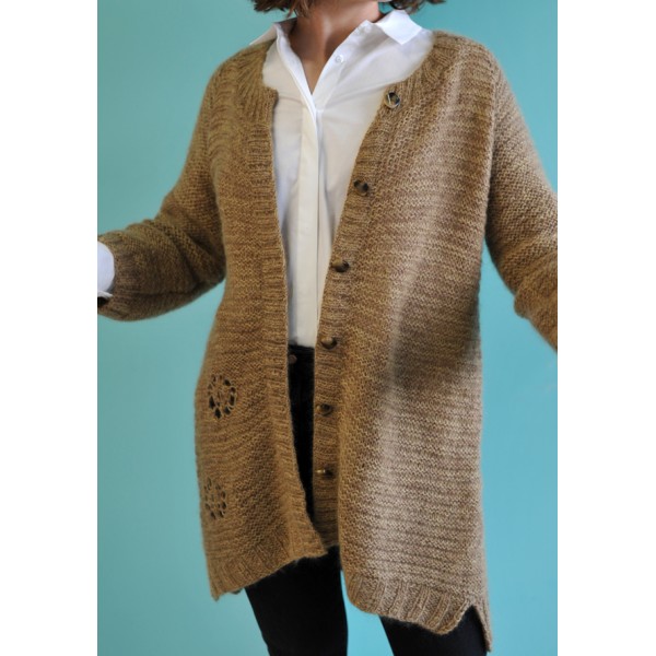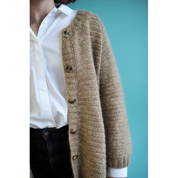 Le modèle présenté a été créé par Lulu la guitare pour LUCE et tricoté en Mohair Luxe 0139 et baby alpaca 0196 de Lang yarns avec des aiguilles circulaires de 6 mm en 80 cm.