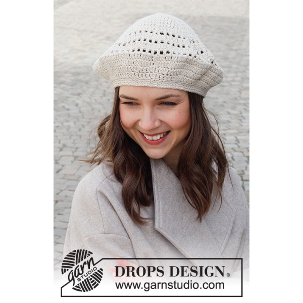 Béret crocheté de haut en bas, avec point ajouré, en DROPS Soft Tweed.