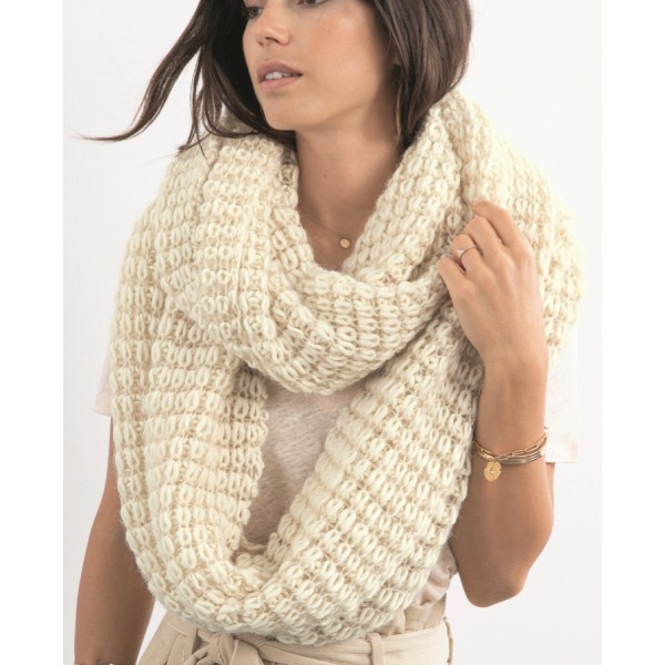 Le modèle de présentation est réalisé en PHIL POLAIRE et PHIL MOHAIR SOIE LUREX