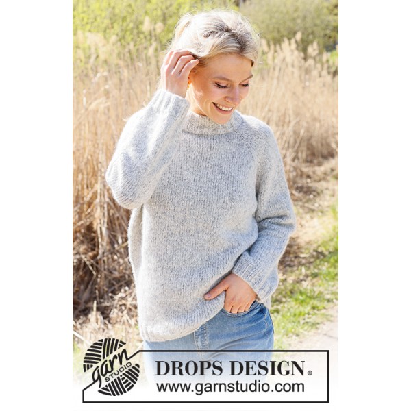 Pull tricoté de haut en bas en jersey, avec col doublé et emmanchures raglan, en DROPS Air. Du S au XXXL.