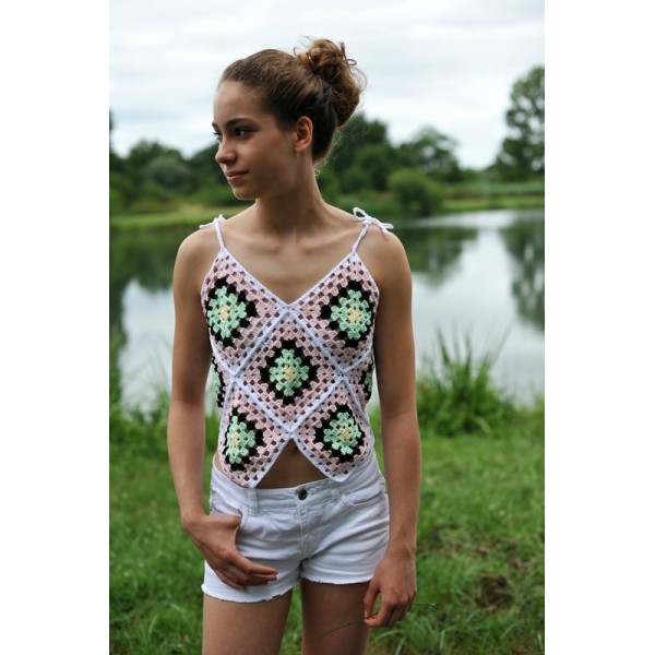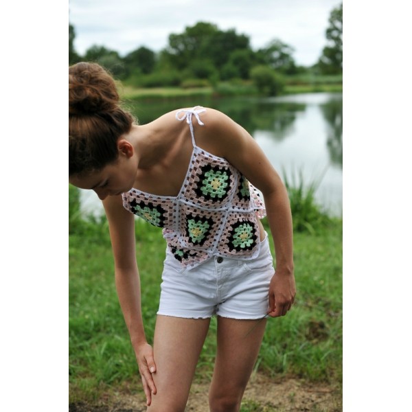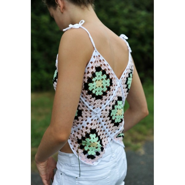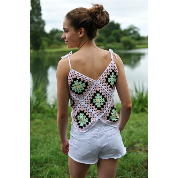 le Kit Débardeur CHA est réalisé en coton bio di Luce. Il comprend la laine et les explications sont adressées par email.