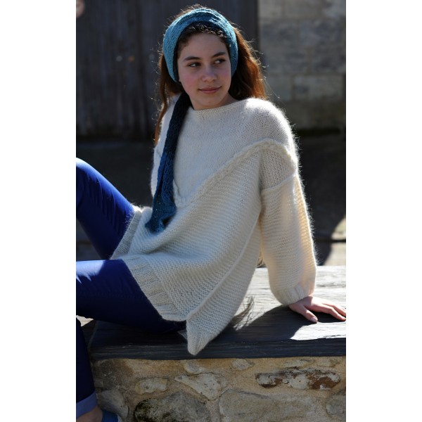 Le modèle de présentation est réalisé en DDL 2 fils coloris nude + kid silk 01 coloris écru taille 34/38
