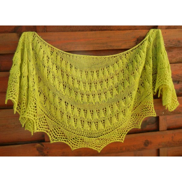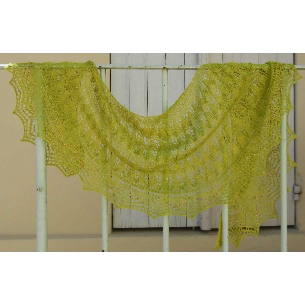Le kit proposé, qui n'est pas le modèle de présentation comprend la laine Lace 400 de Lang yarns (4 pelotes) nécessaire à la réalisation du châle longueur 135 cm profondeur 36 cm ainsi que les explications qui sont envoyées par mail.
