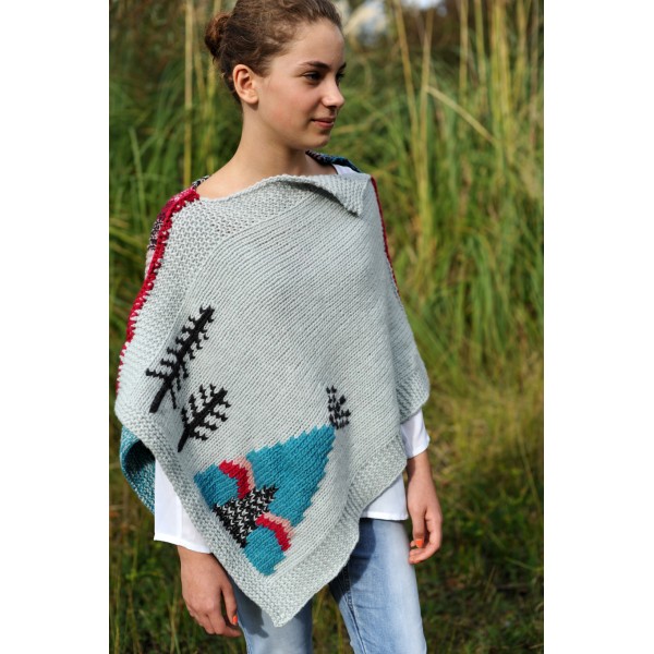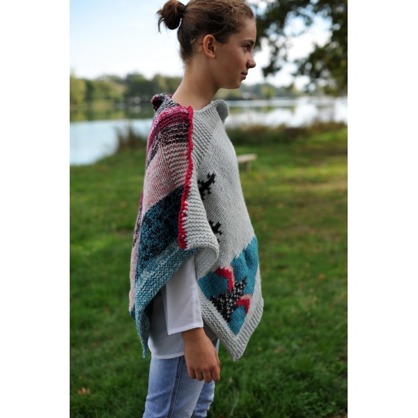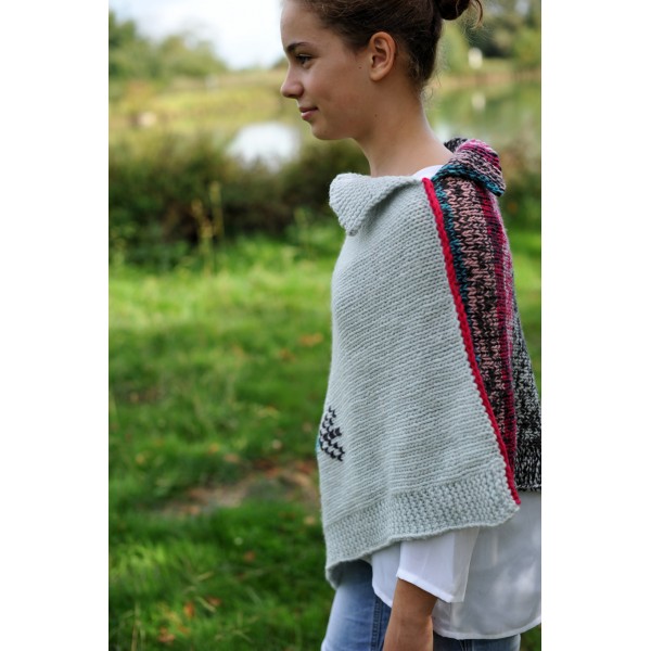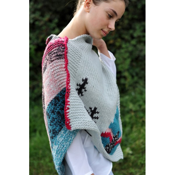 Ce modèle a été créé par Lulu la guitare pour LUCE et tricoté en Merinos 8 mm di Luce coloris givre pour la couleur de fond de la face tipi et Merinos 5,5 mm di Luce en fil double coloris grey, juillet, persan et insouciance pour les jacquards et les parties chinées, avec des aiguilles droites 8 mm.