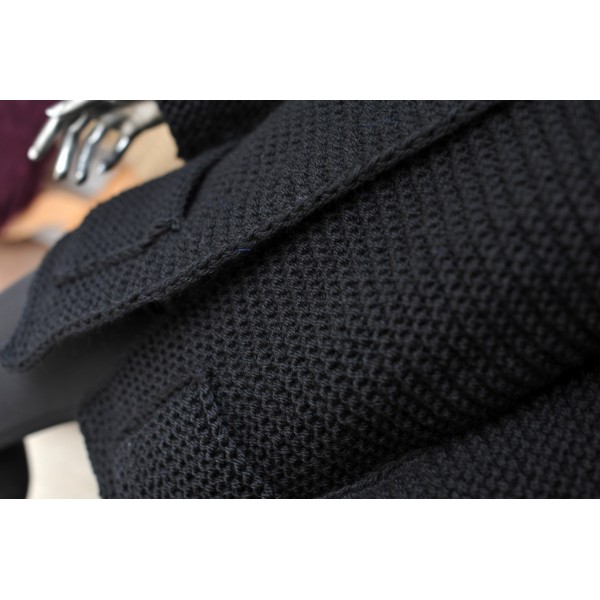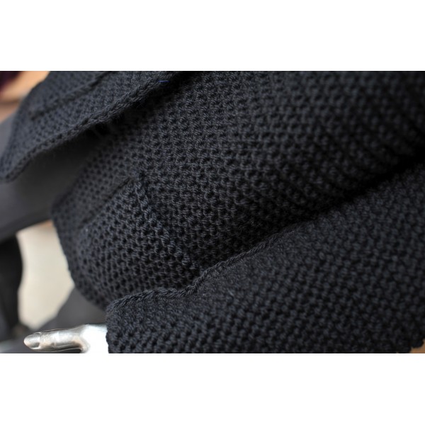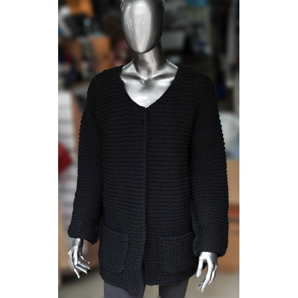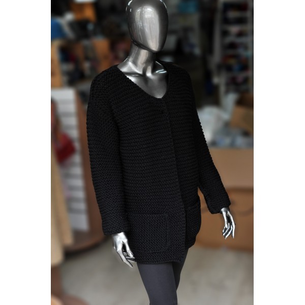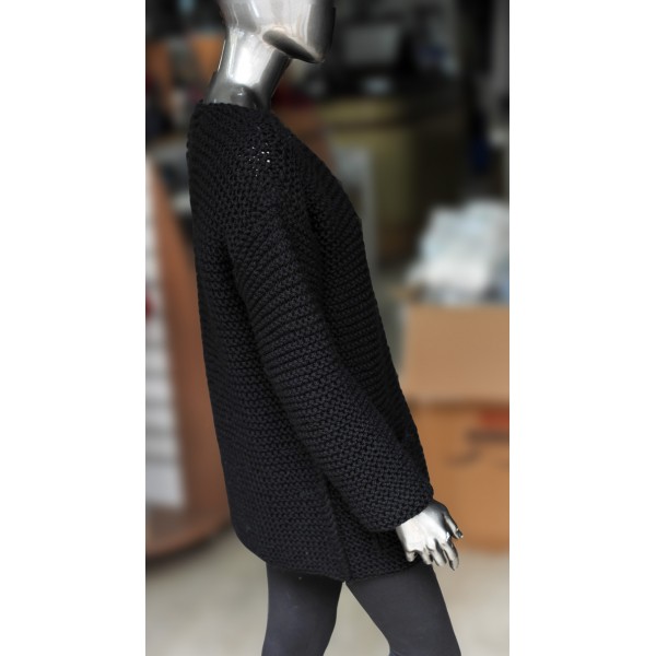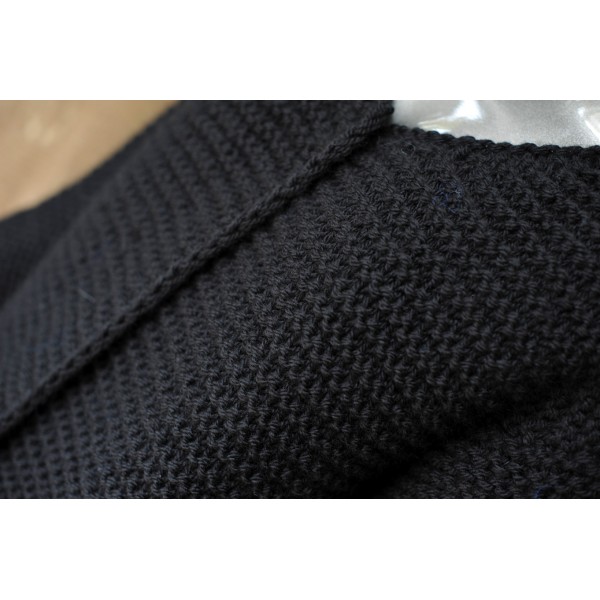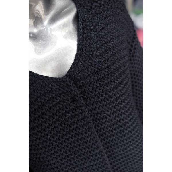 Le modèle présenté est réalisé en taille 36/38 en Bio Lana de Lane mondial coloris noir 200