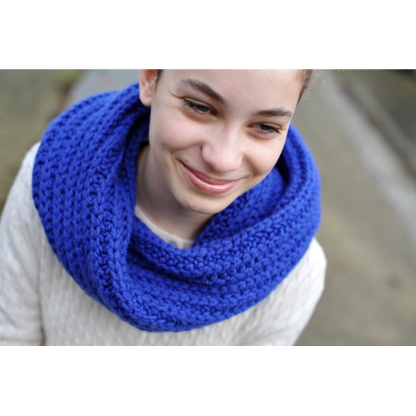 Kit Snood VRILLE réalisé en Laïka de Bouton d'or coloris bleu Klin.